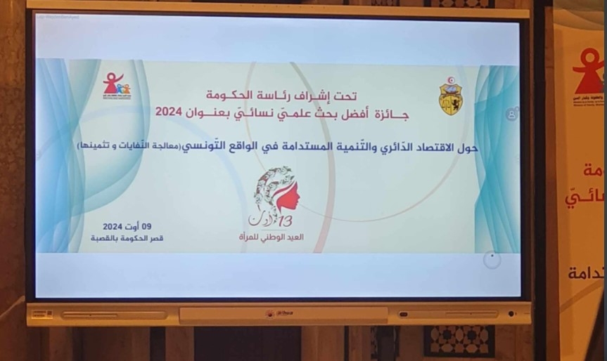 آلت جائزة أفضل بحث علمي نسائي للأستاذة بكلية العلوم بصفاقس، والباحثة بالمركز البيولوجيا بصفاقس سنية جملي، عن بحث بعنوان « تثمين فضلات تقشير البطاطا لانتاج مادة “السيكلودكسترين”، وصناعة مواد لامتصاص الملوثات الضارّة من أجل معالجة فعّالة للمياه.