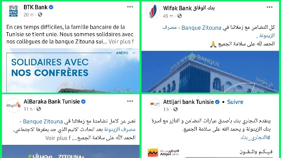 على إثر الحريق الهائل الذي نشب أمس بالمقر المركزي لبنك الزيتونة بالكرم ، عبرت عديد البنوك في تونس عن تضامنها وتعاطفها مع البنك المتضرر.