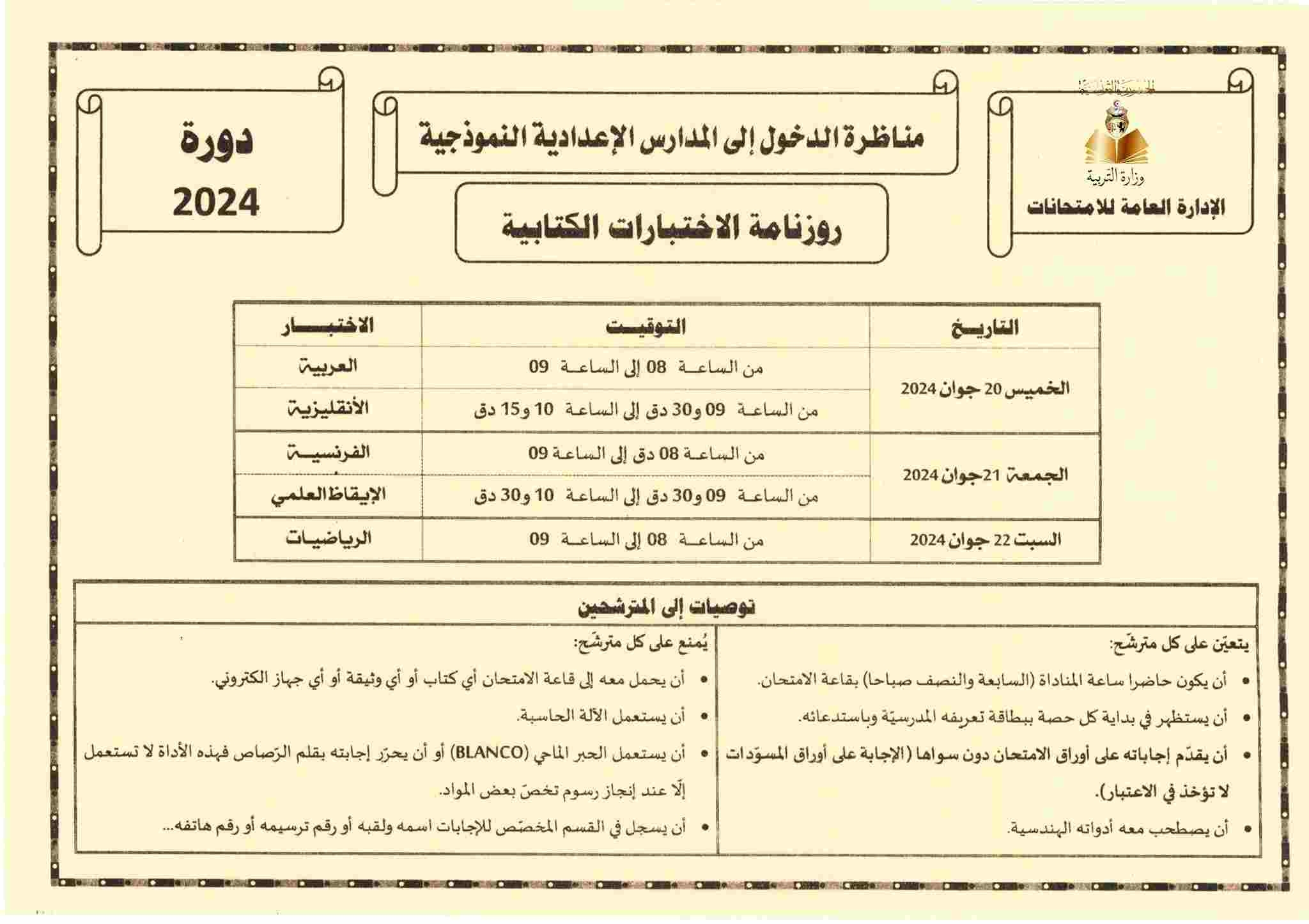Le Ministère de l’Éducation a publié aujourd’hui, lundi, le calendrier des épreuves écrites pour l’examen national du baccalauréat lors de la session principale de 2024, ainsi que pour la session de contrôle. Le calendrier inclut également les date...