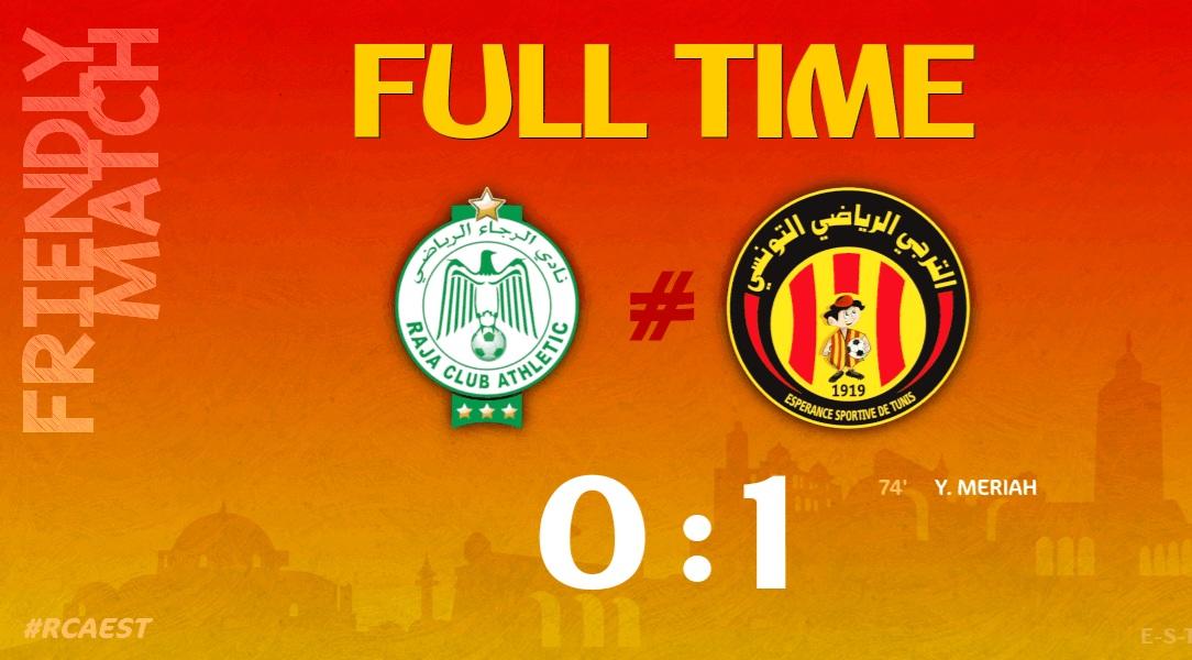 L’Espérance de Tunis a disputé ce dimanche après-midi sin deuxième match amical à Casablanca. Les “sang et or” se sont imposés contre l’équipe B du Raja Casablanca (1-0). Le seul but de la rencontre a été inscrit par Yassine Meriah (74′). Pour rappe