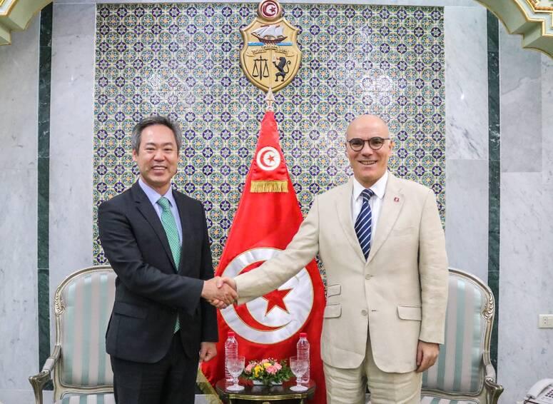 Nabil Ammar, Ministre des Affaires Etrangères, de la migration et des Tunisiens à l’Etranger, a reçu, Le mardi 16 juillet 2024, l’Ambassadeur de la République de Corée en Tunisie, Sun Nahm-kook, qui lui a rendu une visite d’adieu à l’occasion de