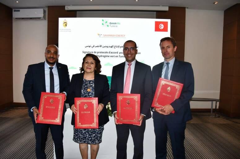 انتظم اليوم الاثنين موكب توقيع 6 مذكرات تفاهم لإنتاج الهيدروجين الأخضر في تونس بإشراف وزيرة الصناعة والمناجم والطاقة فاطمة الثابت شيبوب وبحضور كاتب الدولة المكلف بالانتقال الطاقي وائل شوشان. وقد شهد موكب إمضاء هذه الاتفاقيات حضور رئيس الاتحاد التون