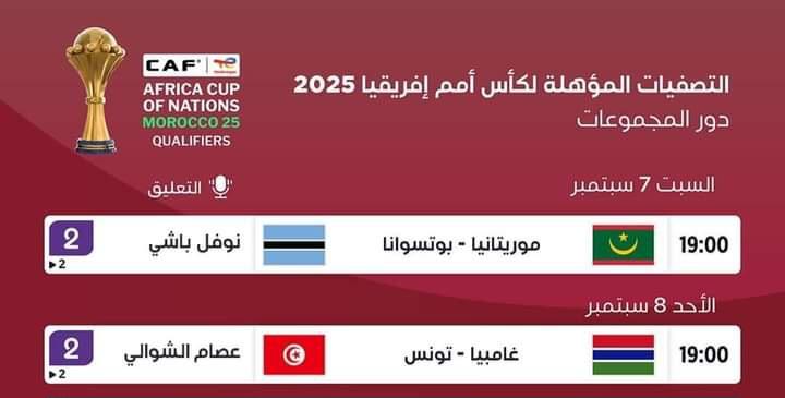 في ما يلي برنامج أبرز مباريات اليوم الأحد 8 سبتمبر 2024 و النقل التلفزي: تصفيات كأس أمم أفريقيا – المغرب 2025 : 16:00غامبيا – تونس / beIN Sports HD 2 دوري الأمم الأوروبية : 14:00 لوكسمبرغ – روسيا البيضاء / beIN Sports HD 1 17:00 بلغاريا – إيرلندا ال