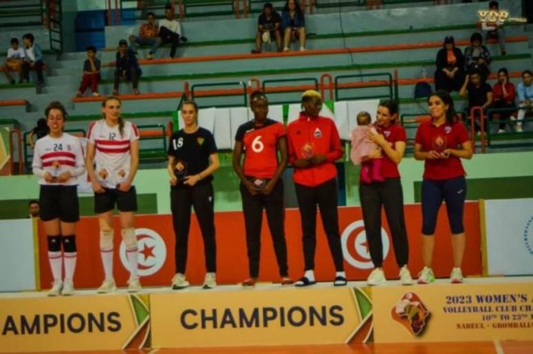 اختار الاتحاد الافريقي للكرة الطائرة لاعبتا النادي النسائي بقرطاج جهان محمد ورغدة بن صميدة ضمن التشكيلة المثالية للبطولة الافريقية سيدات التي اختتمت فعالياتها أمس الاثنين 22 ماي 2023 بقاعة نابل. وأحرزت جهان محمد جائزة أفضل لاعبة ضاربة، بينما تحصلت زم